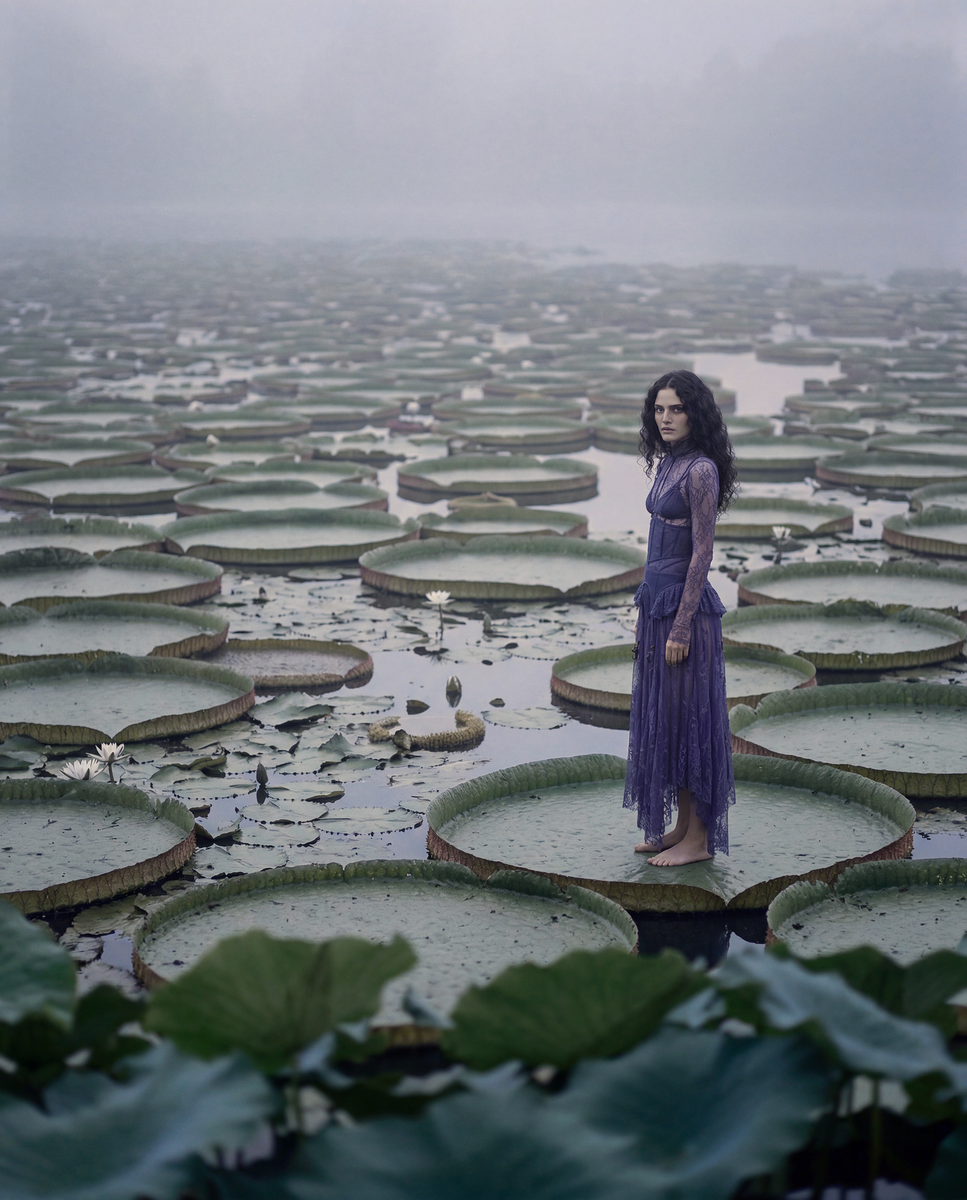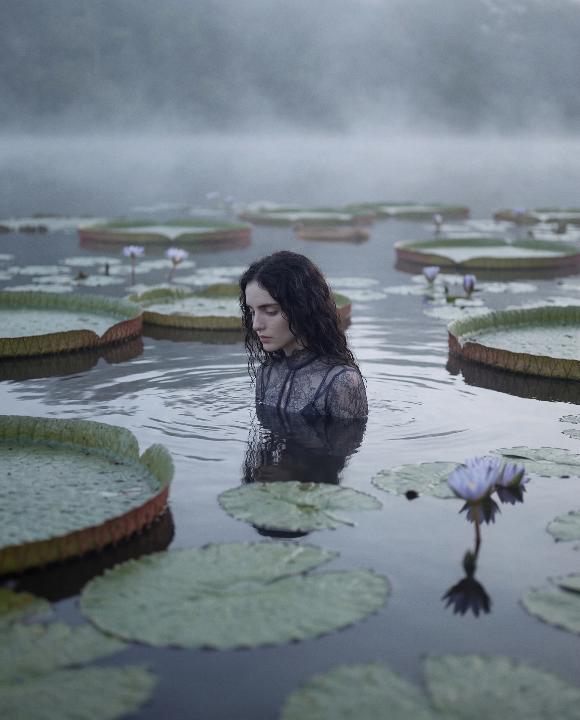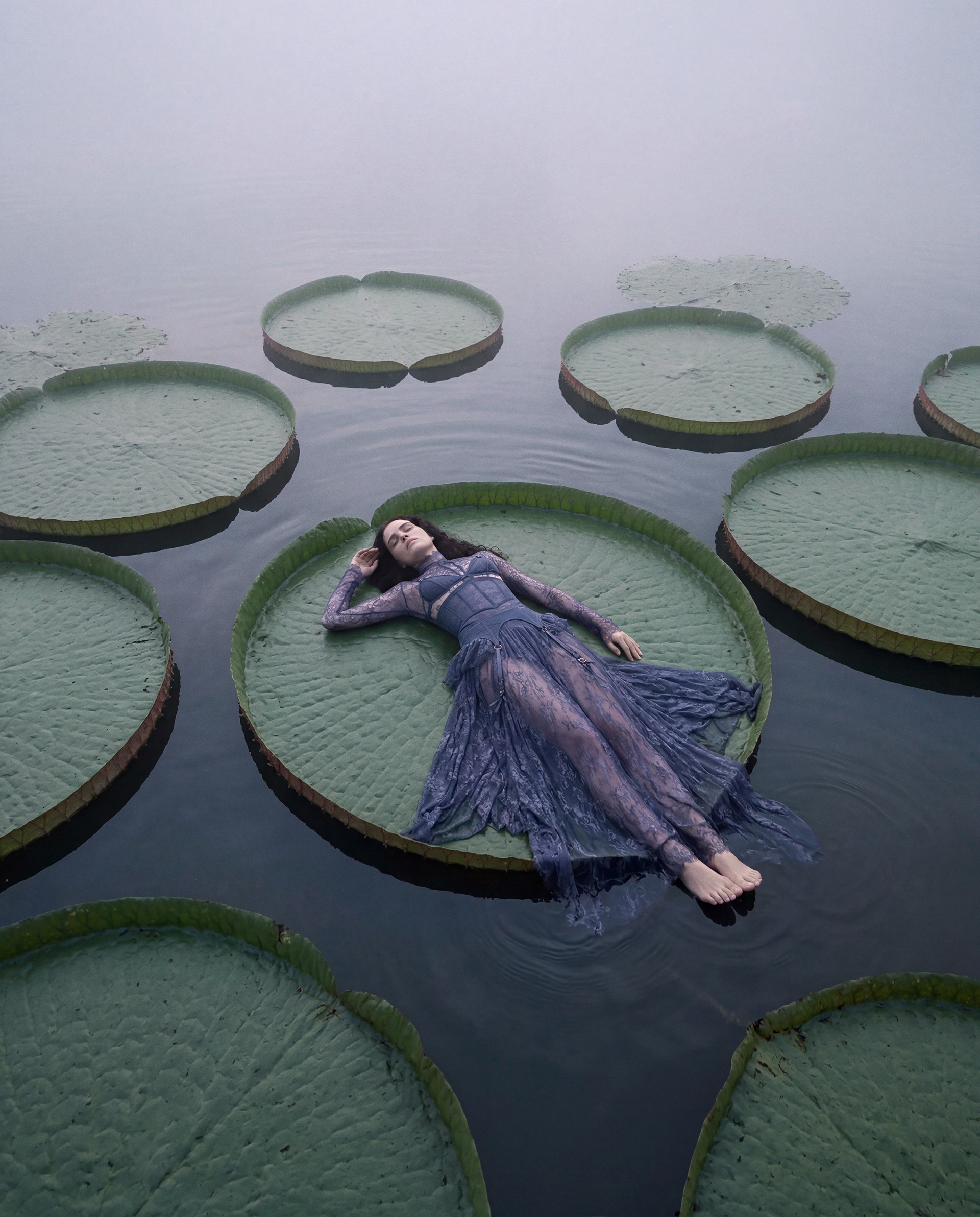 Like the Victoria Amazonica lily, both fragile and strong, the figure exists in a state of balance between weight and fluidity. There is no resistance here — only recognition.