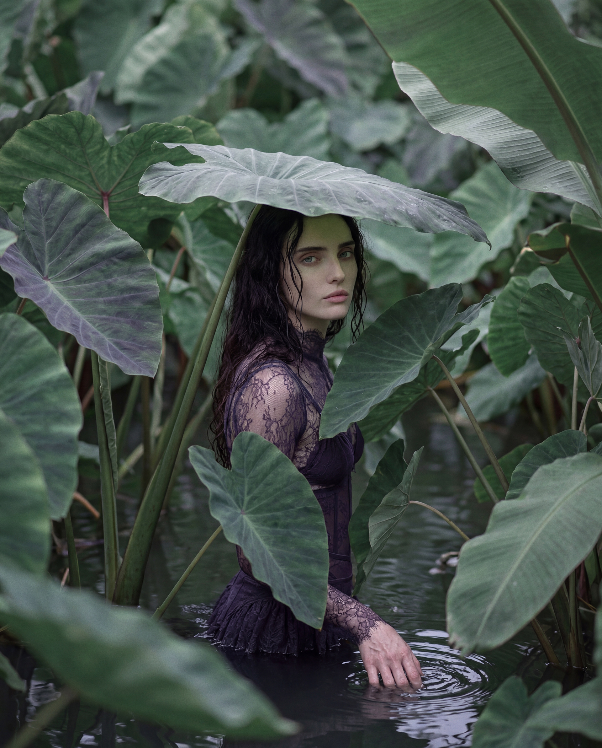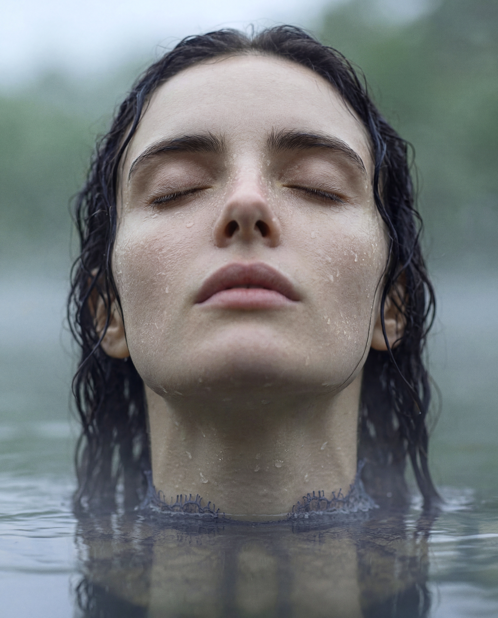 This project explores the moment when the feminine form loses its boundaries and begins to behave like water — reflective, deep, and constantly shifting. Here, fashion is no longer a static structure, but a living element that dissolves into its environment and reforms again.